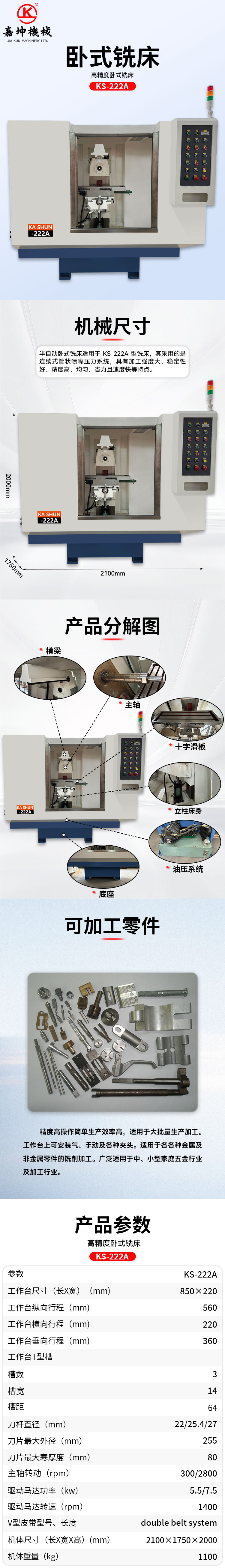 KS-222A 高精密卧式铣床