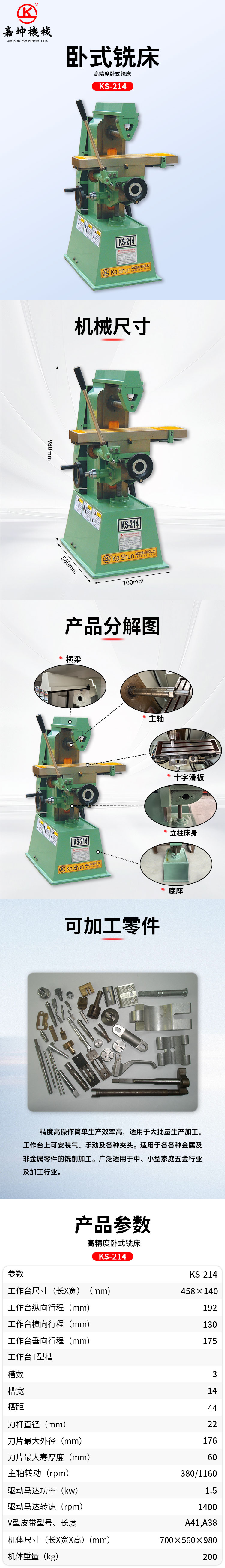 KS-214 高精密卧式铣床