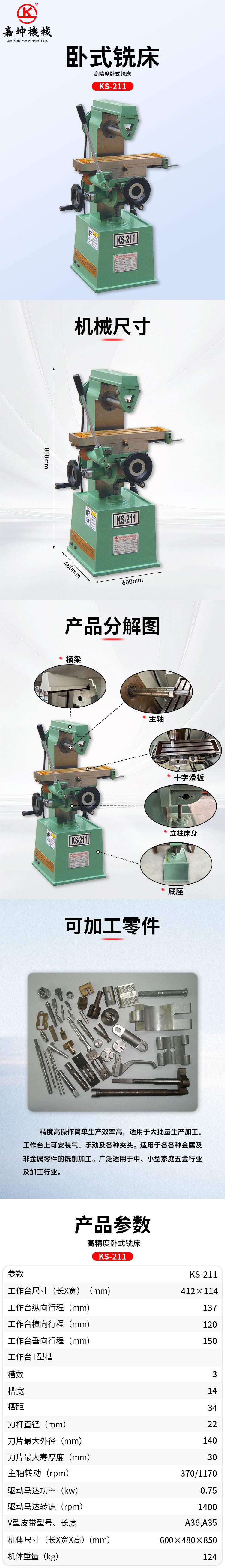 KS-211 高精密卧式铣床